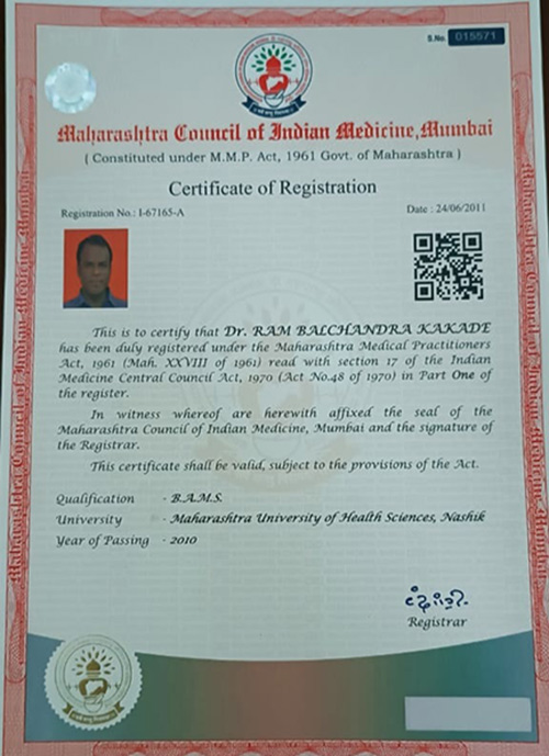 Worked under the Guidance of: Dr. Sameer Jamadagni (Shree Vishwamrut Ayurvedic Chikitsalay & Panchakarma Kendra, Pune) for 4 years
